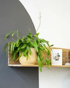 Planta colgante de hojas pequeñas y delicadas, muy decorativa en estanterías altas o macetas suspendidas. Es pet-friendly y compatible con la convivencia con mascotas.