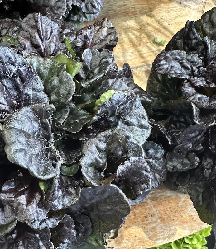 Ajuga reptans: Sus hojas de un morado casi negro parecen absorber la luz. Es perfecta para crear contrastes intensos y añadir un toque gótico a tu rincón verde.