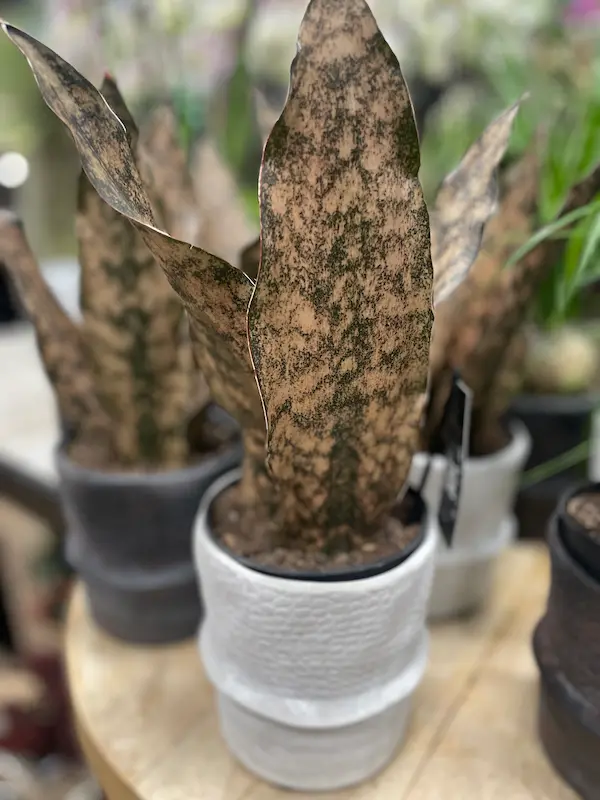 Dracaena trifasciata (conocida popularmente como “Lengua de suegra”): una clásica planta de interior que, con sus tonos verdes y amarillos, aporta elegancia y energía a cualquier espacio. Sus hojas erguidas, firmes y afiladas recuerdan a una serpiente en posición de alerta, lo que le da un aire misterioso y fascinante ¡Además, dicen que ayuda a proteger el hogar y mantener alejadas las malas vibraciones!