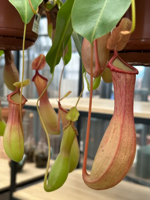 Nepenthes: una planta carnívora tan fascinante como inquietante. Sus jarras colgantes, de tonos rojizos y verdosos, atraen insectos desprevenidos… y los devoran. Una auténtica joya de la naturaleza.